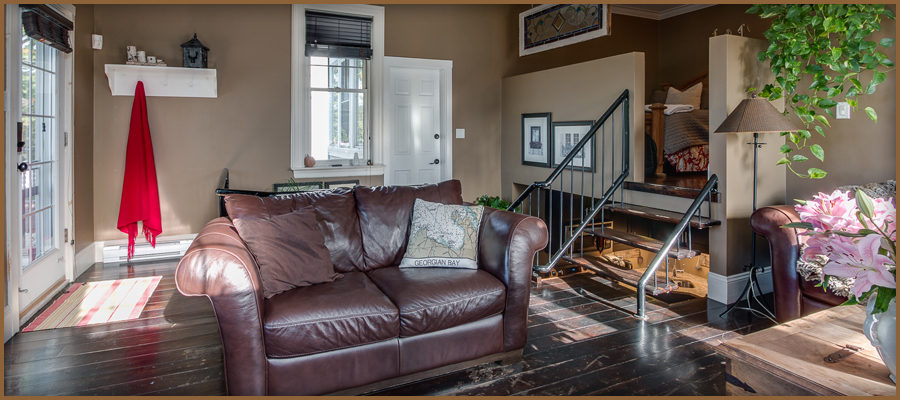 This designated historic home was established circa 1878 as the McGibbon Lumber Company and is located in the heart of historic Penetanguishene. Penetanguishene, sometimes shortened to Penetang, is a town in Simcoe County, Ontario, Canada. It is located on the southeasterly tip of Georgian Bay. Incorporated on February 22, 1882, this bilingual community has a population of 8,962.
